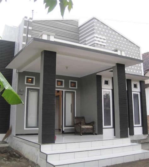 teras depan atap unik elegan tiang talang lantai rumahdiy modelrumahminimalis2 besi kursi bata
